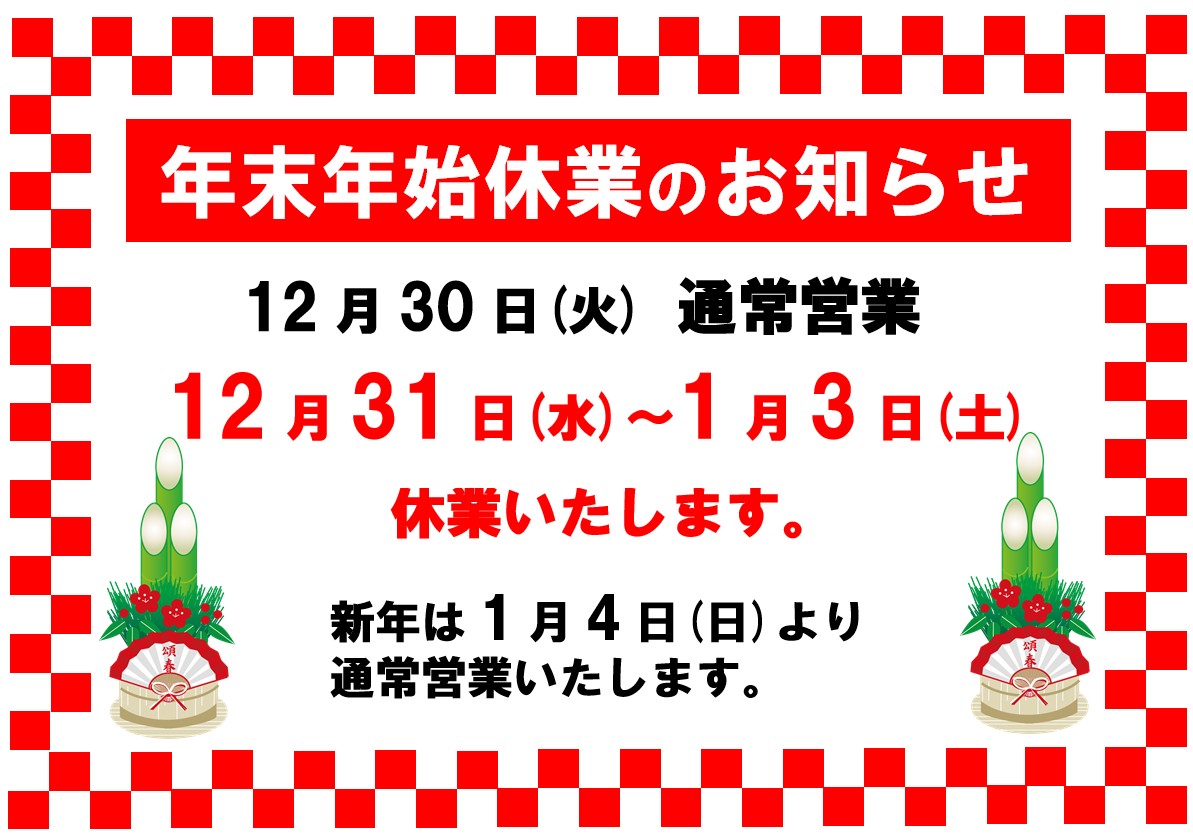年末年始休業日のお知らせ